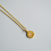 قلادة نحاسية بسيطة لامعة مطلية بالذهب شمال الماس نجمة ثمانية مدببة قلادة عملة عصرية للنساء