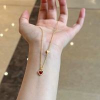 Xiaohongshu superventas collar de corazón de piedras preciosas rojas para mujer exquisito colgante en forma de corazón pequeño conjunto de joyería en capas de moda
