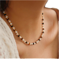 Trendy Women's Stainless Steel Choker Necklace White Black Crystal Bead with Natural Tiger Eye Stone Geometric Shape Jewelry