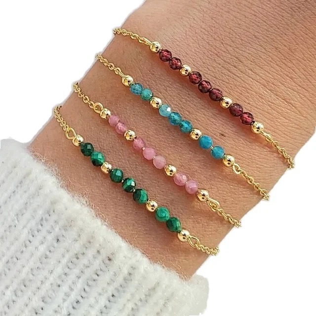 Zooying High Quality Delicate Natural Aqua Mint Blue Gemstone Gold Silver Dainty Tiny Gemstone Beaded Bracelet for Women