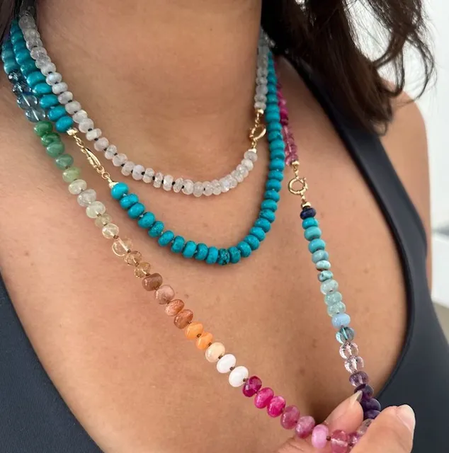 Zooying Popular Handmade Multi Color 18K Gold Color Natural Stone Rainbow Slik Knotted Gemstone Necklace for Women Jewelry