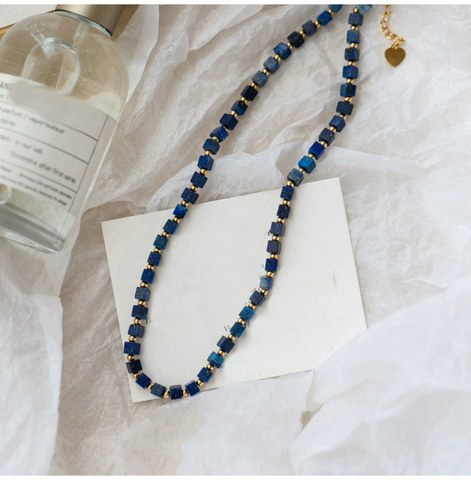 Zooying Natuursteen Lapis Lazuli Kubus Vormige Kralen Kralen Ketting