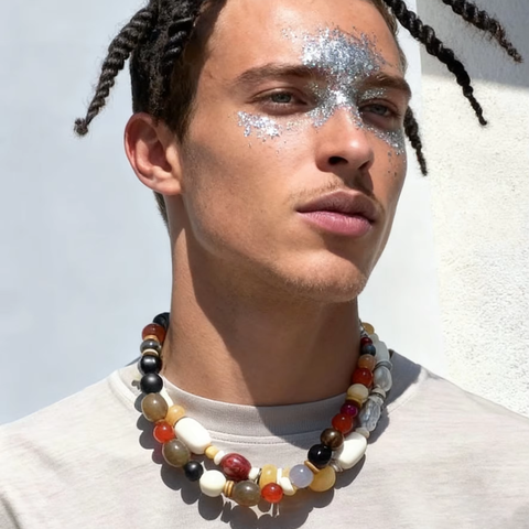 Zooying Dubbellaags Natuursteen Titanium Stalen Ketting Kleurrijk Dopamine Ontwerp Fade Proof Choker Mode Kettingen